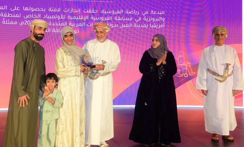 وتضمن أيضًا تكريم سارة بنت محمد البلوشية الحائزة على الميدالية الذهبية في الألعاب العالمية للأولمبياد الخاص بأبوظبي عام 2019م، والميدالية الفضية في لعبة البوتشي، إلى جانب ميداليات ذهبية في البوتشي ودفع الجلة ورمي الرمح خلال مهرجانات الأشخاص ذوي الإعاقة في عامي 2023م و2025م، إضافة إلى الميدالية الذهبية في دفع الجلة والفضية في الريشة الطائرة، مؤكدة على حضورها الرياضي المتميز رغم إعاقتها الحركية.