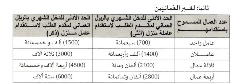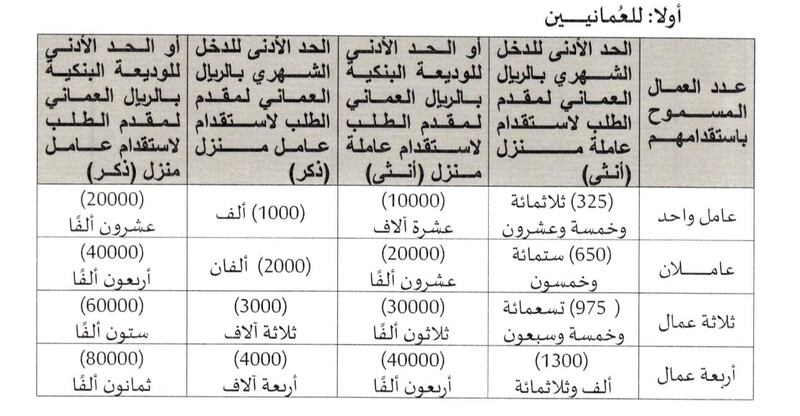 ويشمل هذا التعديل كلًا من العمانيين وغير العمانيين، ضمن فئة المستخدمين داخل المنزل، مع تحديد شروط الدخل وفق الضوابط الجديدة.