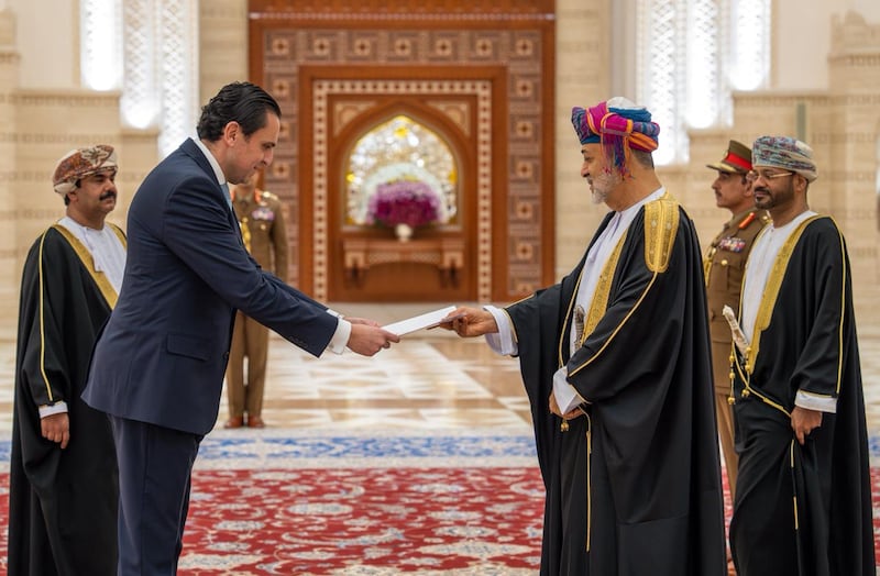 حضر مراسم تقديم أوراق الاعتماد معالي السّيد وزير ديوان البلاط السُّلطاني، ومعالي السّيد وزير الخارجية، واللواء الركن قائد الحرس السُّلطاني العُماني، وسعادة رئيس المراسم السُّلطانية، والمرافقان العسكريان لجلالة السُّلطان.