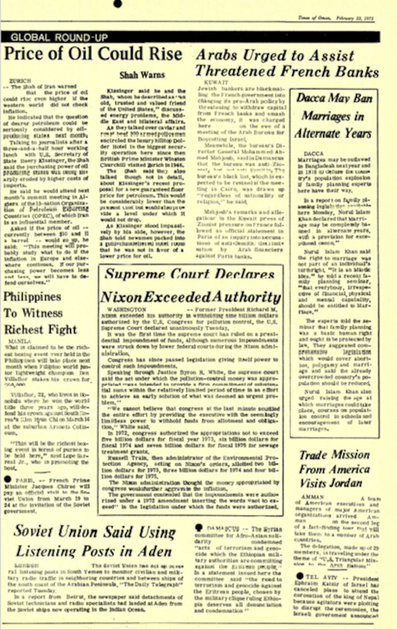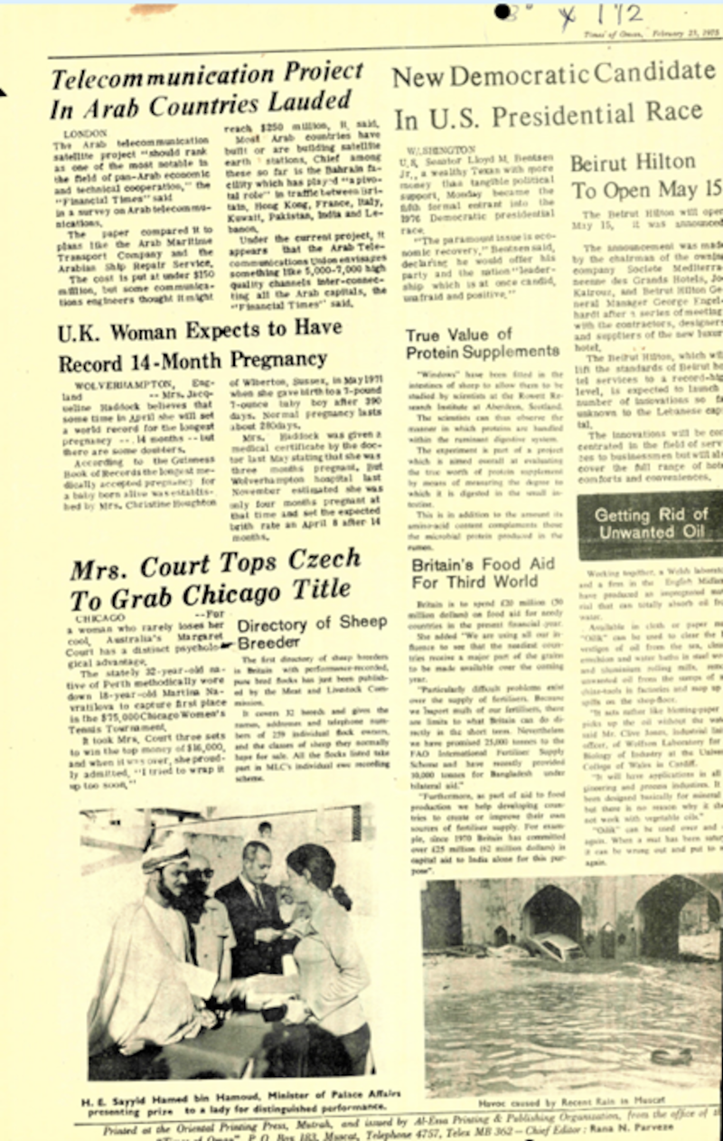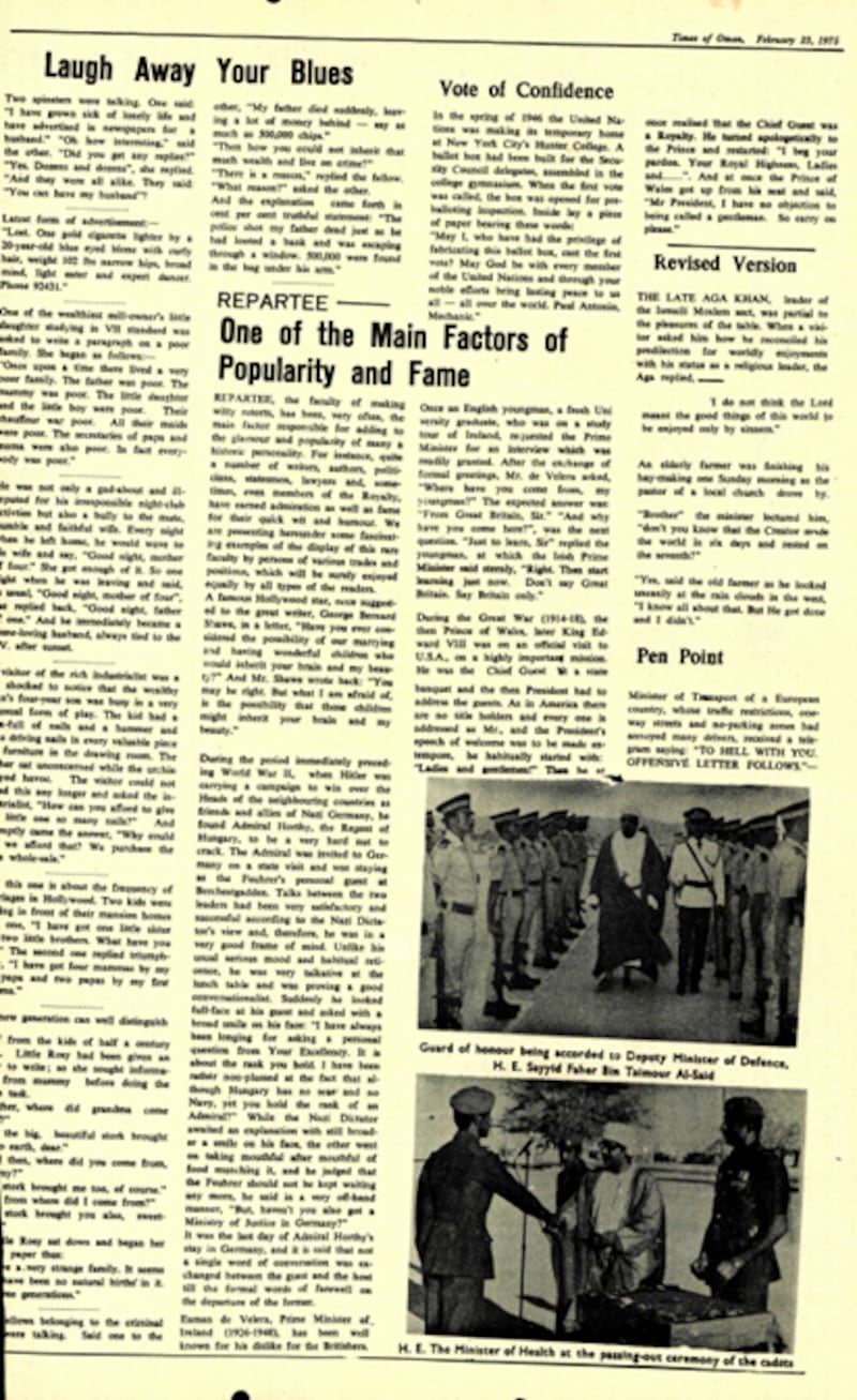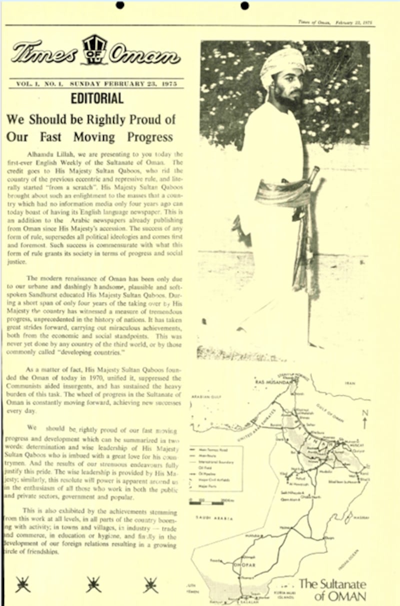 - تايمز أوف عمان. العدد الأول، 23 فبراير 1975