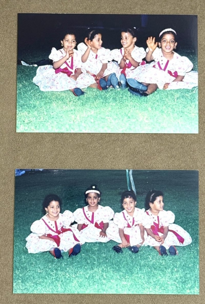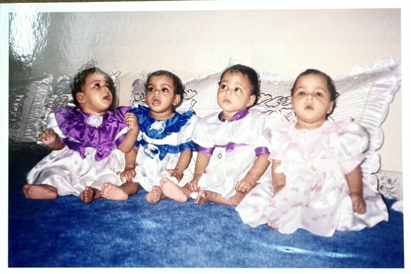 ويضيف أن الشَّبه الكبير الذي كان يميز التوائم الأربعة كثيرًا ما أوقع المحيطين بهن في مواقف طريفة، سواء في المدرسة حيث كنّ يدرسن في الصف الدراسي نفسه، أو داخل الأسرة، إذ كان بعض المعلمات وأفراد العائلة يجدون صعوبة في التفريق بينهن، ما أضفى على حياتهن اليومية طابعًا خاصًا من الذكريات المشتركة والقصص التي ما تزال حاضرة في ذاكرة الأسرة حتى اليوم.