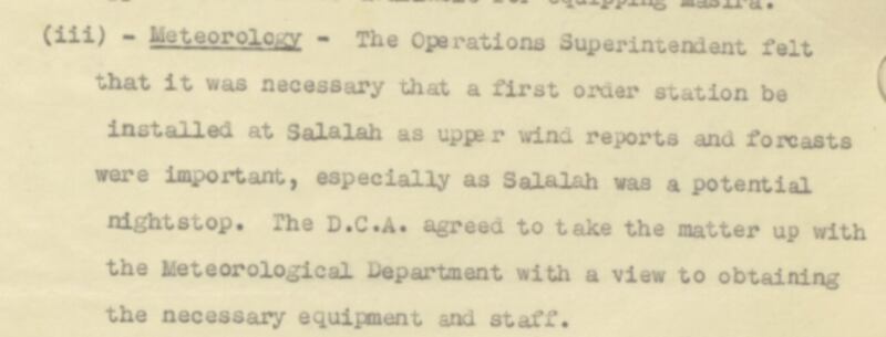 تواصل هذا الاهتمام خلال العقود اللاحقة، حيث أُنشئت في عام 1942م ثلاث محطات إضافية في كلٍ من صلالة، وجزيرة مصيرة، وثمريت، وذلك في ظل تزايد الحاجة إلى بيانات مناخية دقيقة تخدم الطيران والأنشطة العسكرية خلال فترة الحرب العالمية الثانية.