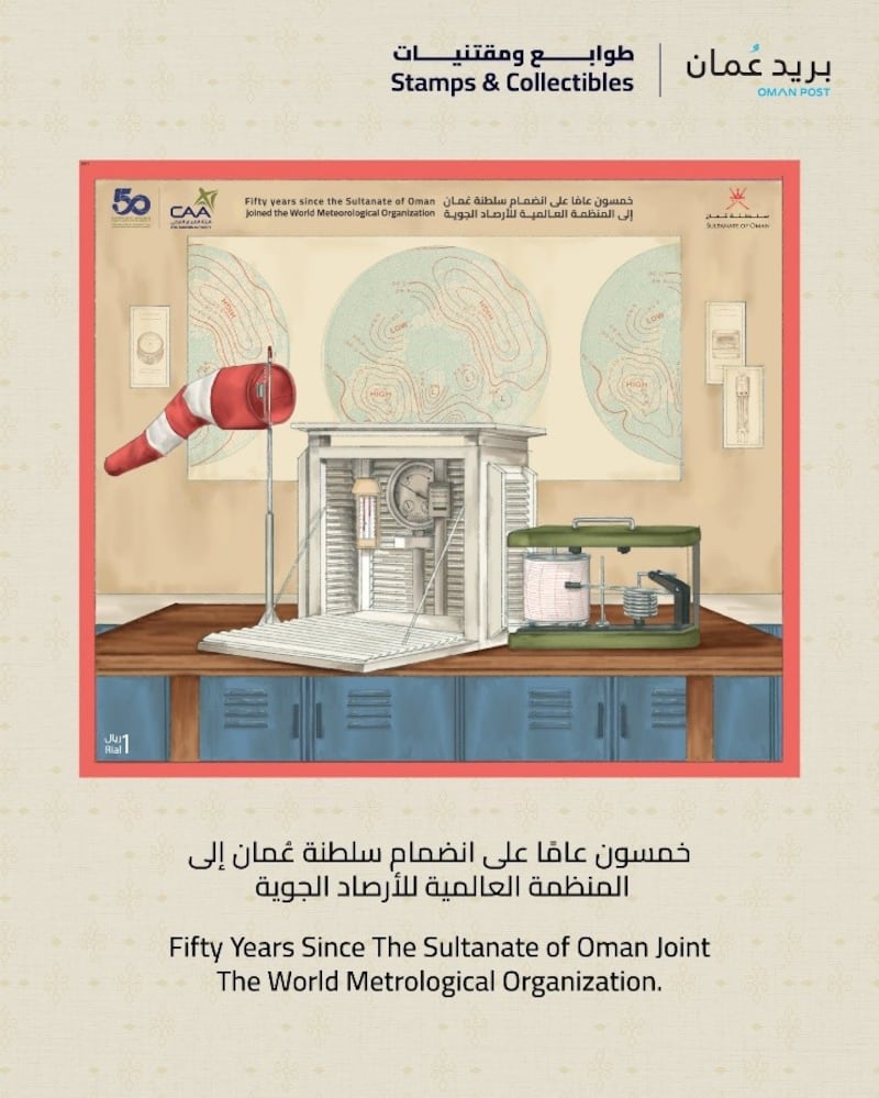 في 25 يونيو 2025م، واحتفاءً بالذكرى الخمسين لانضمام سلطنة عُمان إلى المنظمة العالمية للأرصاد الجوية (WMO)، دشّنت هيئة الطيران المدني طابعًا بريديًا تذكاريًا خاصًا بهذه المناسبة، في لفتةٍ توثّق مسيرة نصف قرن من العمل الأرصادي في السلطنة.