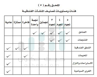 ويكون تصنيف المنشآت الفندقية- وفق ما رصدته “أثير”- طبقا للفئات الآتية: