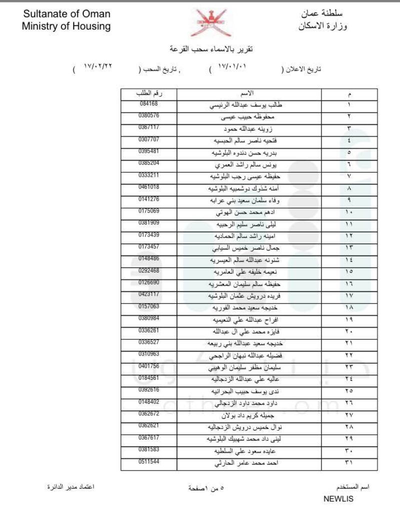 أعلنت وزارة الإسكان اليوم الأحد عن دفعات جديدة لمستحقي الأراضي السكنية بمحافظة مسقط.