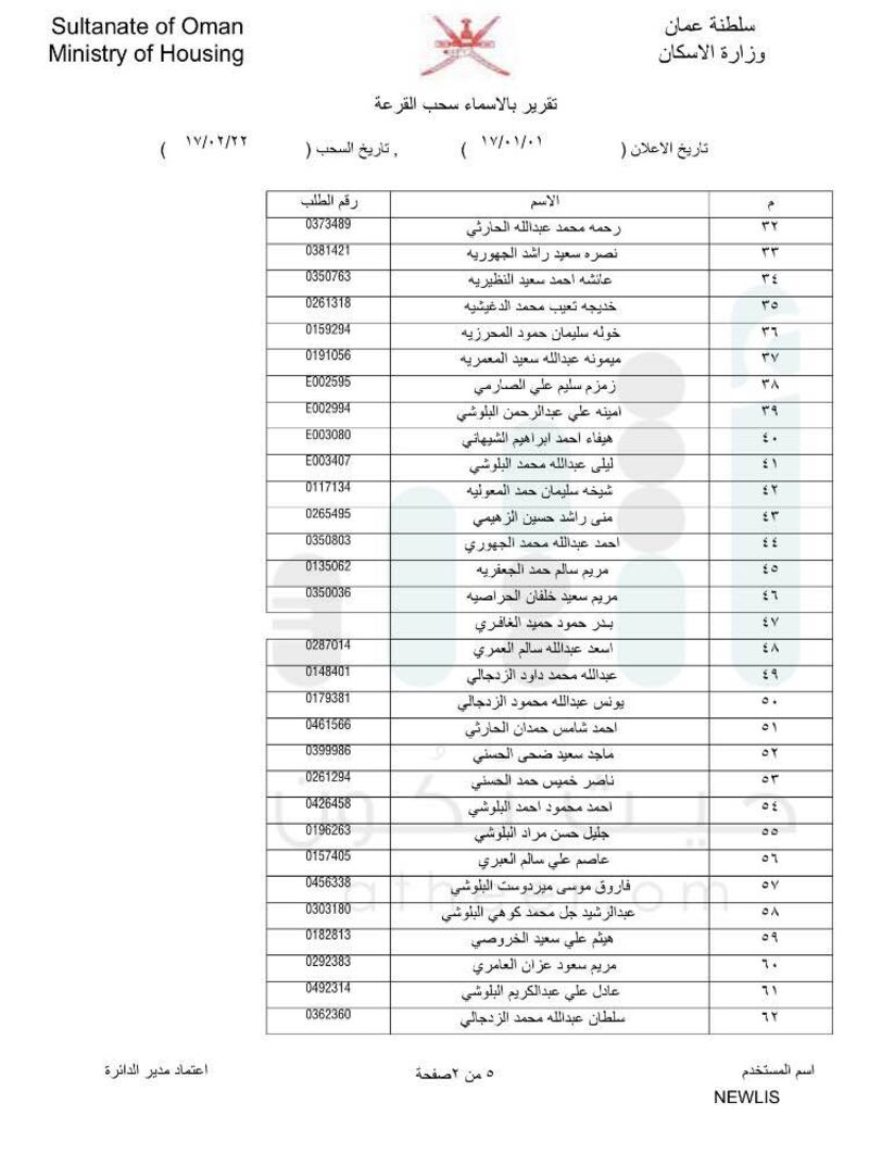 الدفعة الثانية : تاريخ السحب يوم الأربعاء الموافق ٢٠١٧/٢/٢٢م :