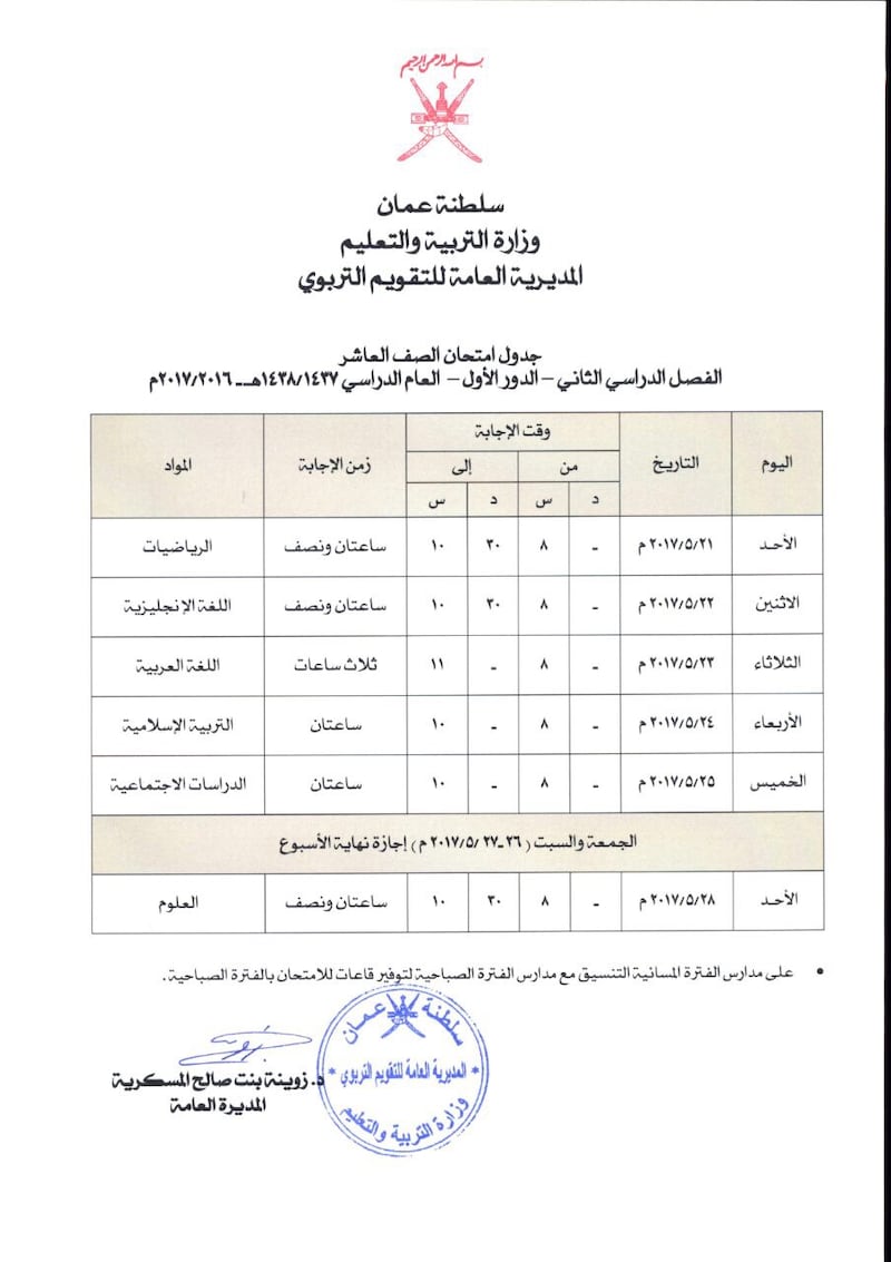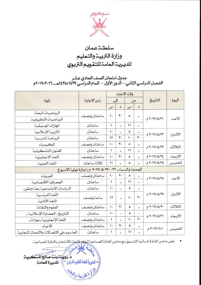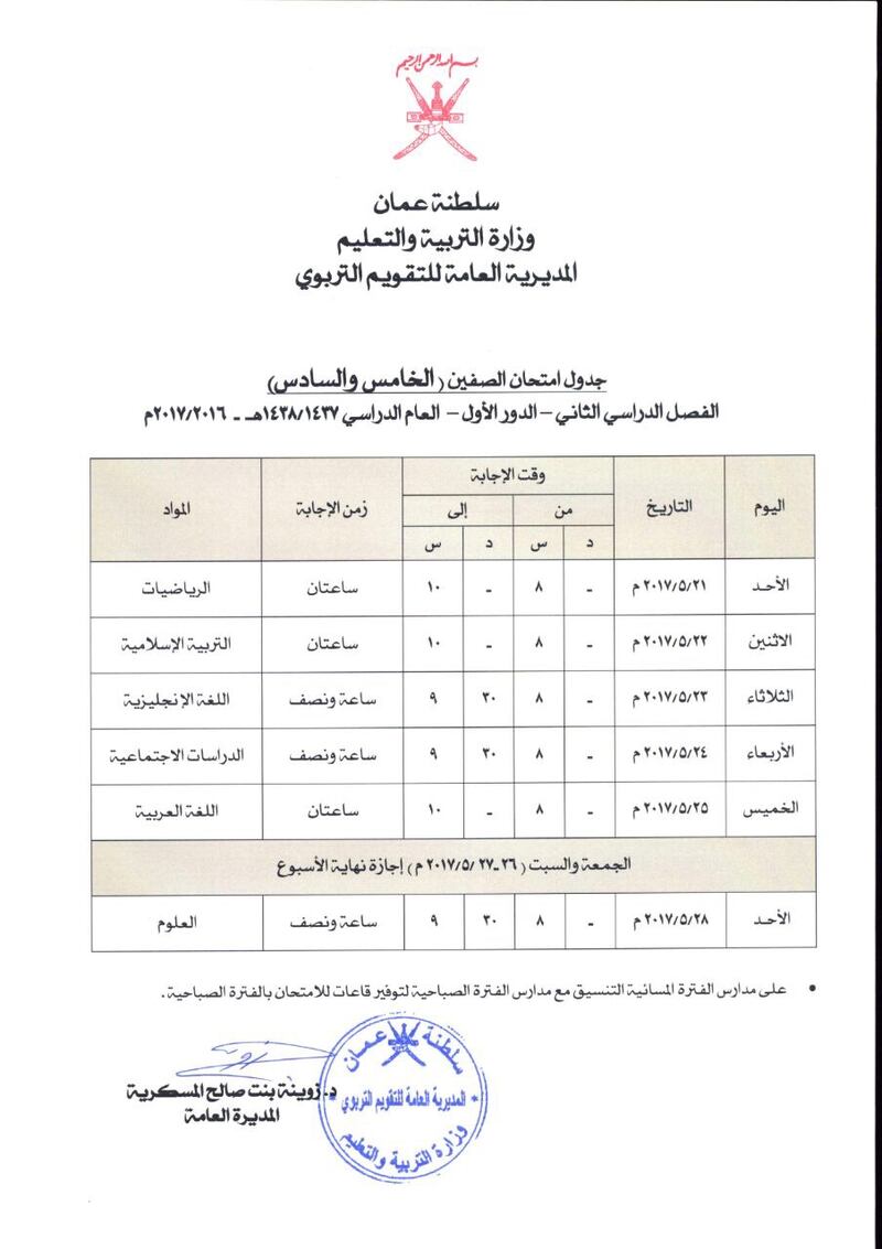 فيما يلي جداول الامتحانات حسب ترتيب الصفوف المعلن عنها: