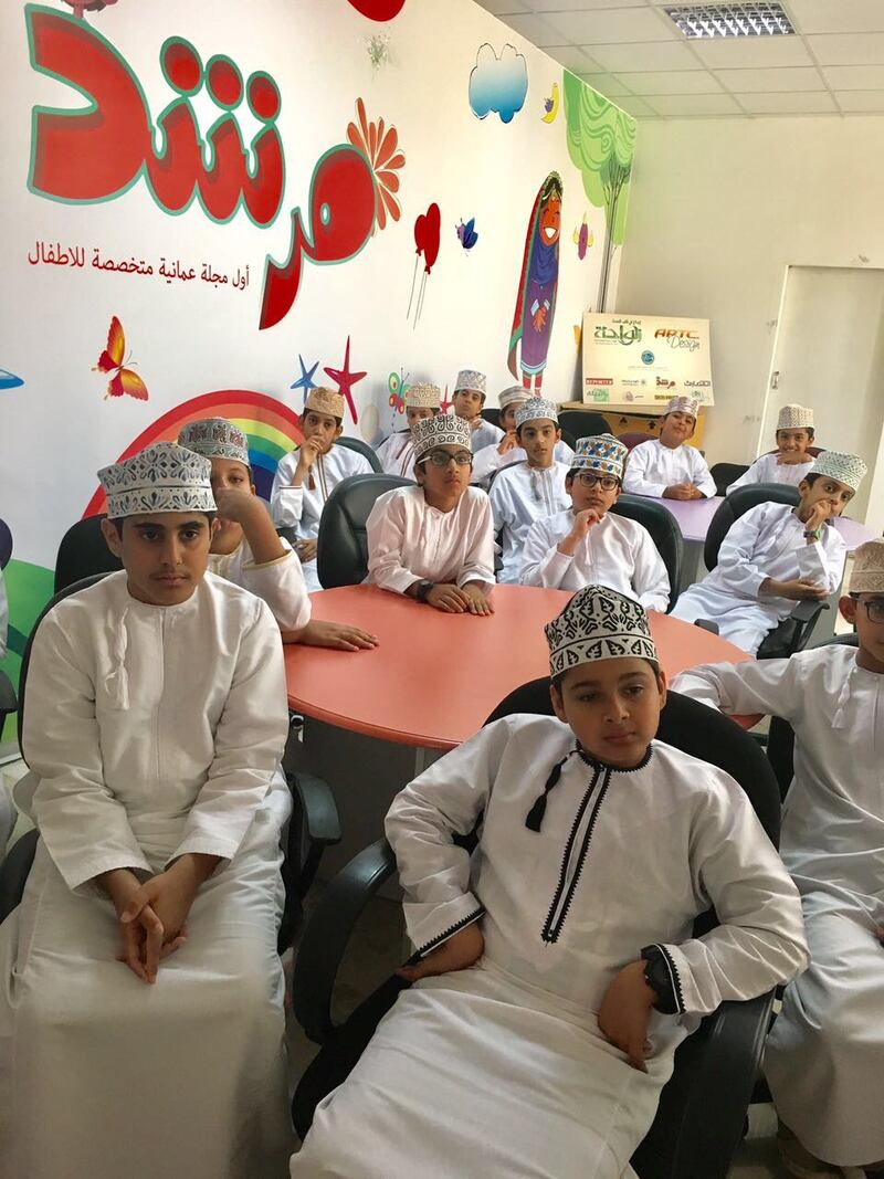 كما تعرف الطلاب على مجلة مرشد كاول مجلة عمانية للاطفال والابواب التي تحوي المجلة من بينها مغامرات مرشد وحكاية جدتي شيخة وبراعم القران ولعبتي الشعبية والرحالة الصغير والابواب الاخرى التي تحمل مساهمات وابداعات الاطفال كما تعرف الاطفال على اقسام التحرير واقسام التنفيذ والاخراج وكيفية رسوم شخصيات مرشد.