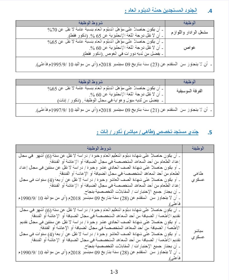 – أن يكون لائقا طبيا وبدنياً وأن يكون مستوى الإبصار 6/6 وبدون نظارة أو عدسات طبية
