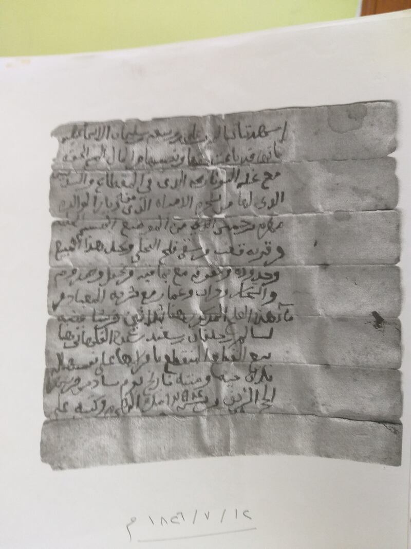 كما وجدت له مخطوطة تعود للقرن الثالث عشر الهجري وفيها شهادة أربعة من المشايخ بخصوص وقف مال (حيط سدرة وجدالة) من قرية قعب لمدرسة القرآن ببلاد صور الملاصقة لمزرعة القلاهتة، وهم ناصر بن عامر بن سالم من أولاد راشد بن جابر، وسالم بن سعيد بن محمود القلهاتي، وراشد بن خميس الإسماعيلي، ومحمد بن خميس الإسماعيلي.
