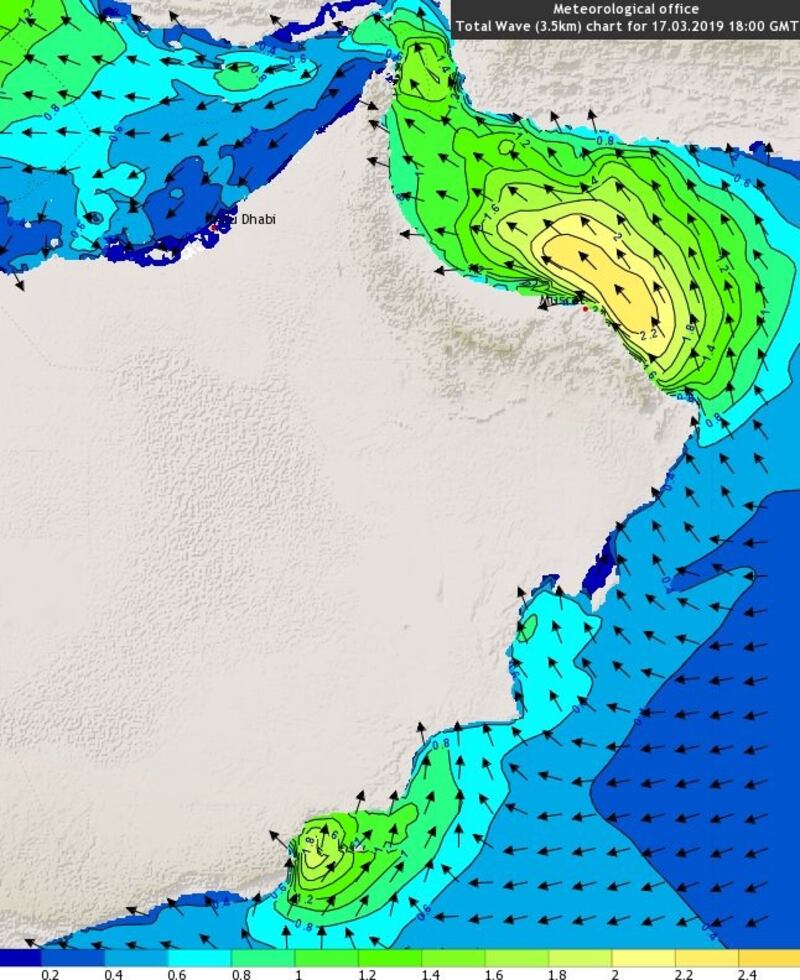 وقالت الأرصاد بأن هذه الرياح ستتسبب في تصاعد الغبار والأتربة على المناطق الصحراوية والمكشوفة، كما سيرتفع موج البحر على سواحل محافظة مسندم وبحر عمان (متوسط/هائج – 2.5 متر) و (متوسط 2.0 متر )على سواحل بحر العرب.