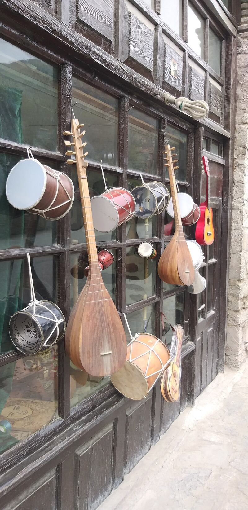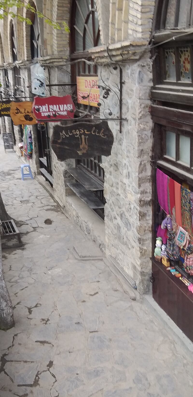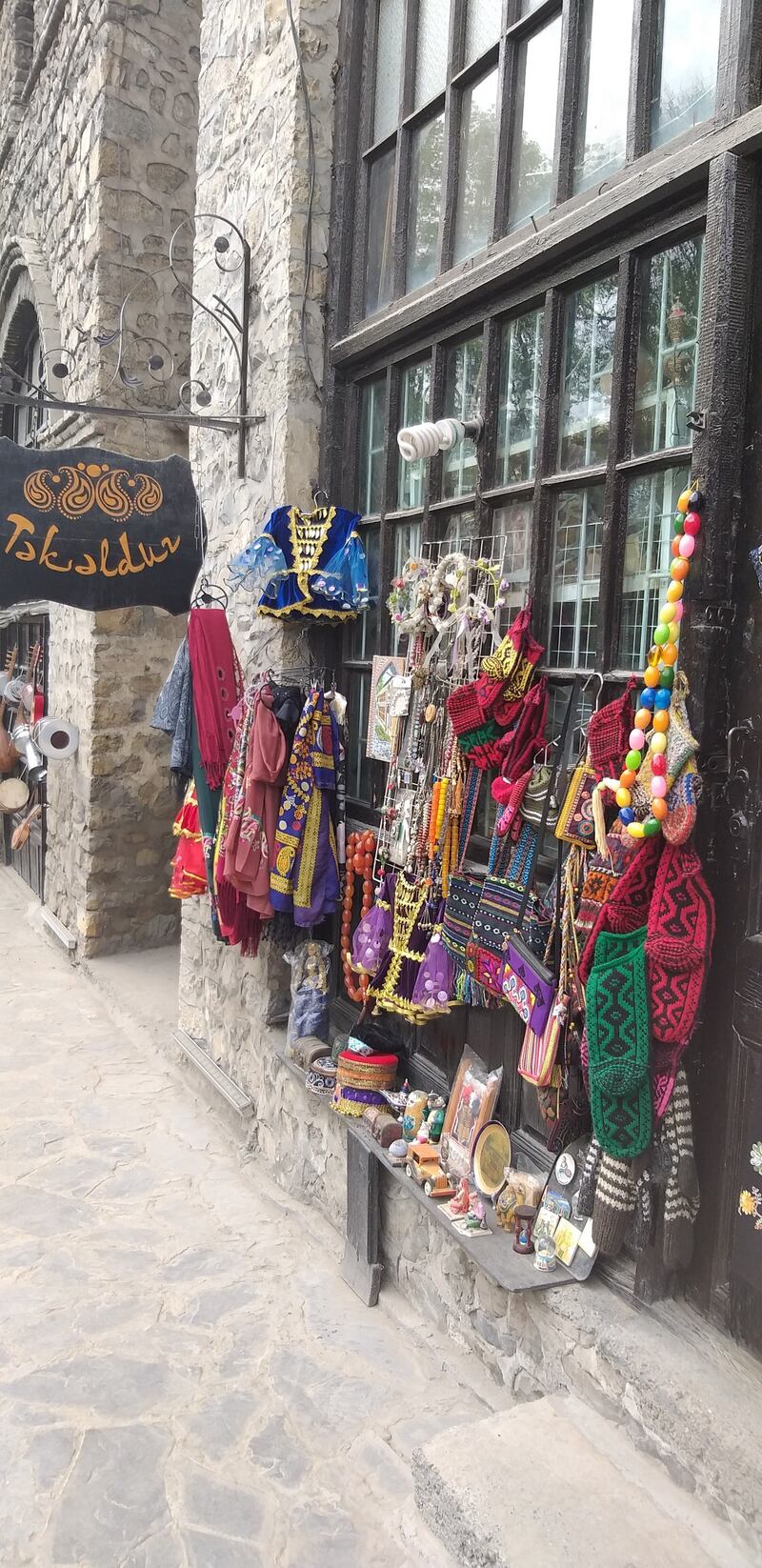 بعد تركنا للقرية القديمة توجهنا باتجاه قلعة شاكي، وقصر (الخانات) الذي كان يُعد المقر الصيفي للحكام، مخترقين شوارع وسط المدينة الأنيقة التي تعج بالمحلات ذات الأنشطة المتنوعة، وقبل وصولنا إلى القلعة والقصر مررنا بالسوق القديم حيث (الخان) الذي تحيط به العديد من المحلات التي تعرض للسلع والبضائع المحلية التقليدية، فكانت النية زيارة الخان وما حوله من محلات بعد الانتهاء من جولتنا في القلعة والقصر.