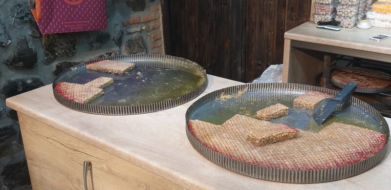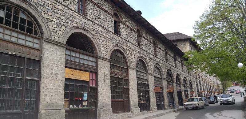 كانت محطة توقفنا الأخيرة في المدينة هي في سوقها التقليدي لشراء الهدايا التذكارية التي تميّز المدينة، لذا فقد توقفنا بالقرب من (خان) المدينة الشهير، حيث إن المدينة كانت ضمن المدن المشهورة بصناعة الحرير، وتقع على طريق الحرير؛ لذا لم يكن من الغريب وجود (الخانات) التي كانت تضم عددًا من المحلات، والمخازن، وغرف الإيواء للتجار القادمين من الشرق والغرب، ولا يزال الخان القديم الذي يتكون من ثلاثة طوابق موجودًا حيث تم تحويل المحلات التي تقع في واجهته إلى مقاهٍ، ومحلات تحف تذكارية، ومحلات حلويات تمتاز بها المدينة، كما يحتوي على عدد من المطاعم التي تقدم نماذج من أطباق المطبخ الأذربيجاني، في حين يتم عرض السجاد الشهير داخل فنائه، كما تقع بالقرب من الخان عددًا من الشوارع التجارية التي تخصصت في بعض الأنشطة كصناعة الحلويات، والمجوهرات، والتحف وغيرها، وكانت فرصة ذهبية لتناول وجبة الغداء المكونة من الكباب الأذري الشهير في أحد المطاعم التقليدية القريبة، ثم التجوال في المحلات القريبة حيث اشتريت عددًا من المناديل الحريرية، وطبقين من بقلاوة شاكي الشهيرة.