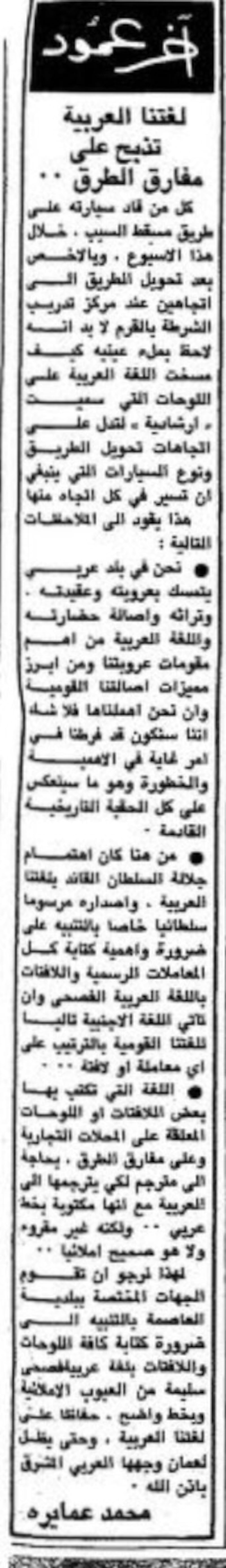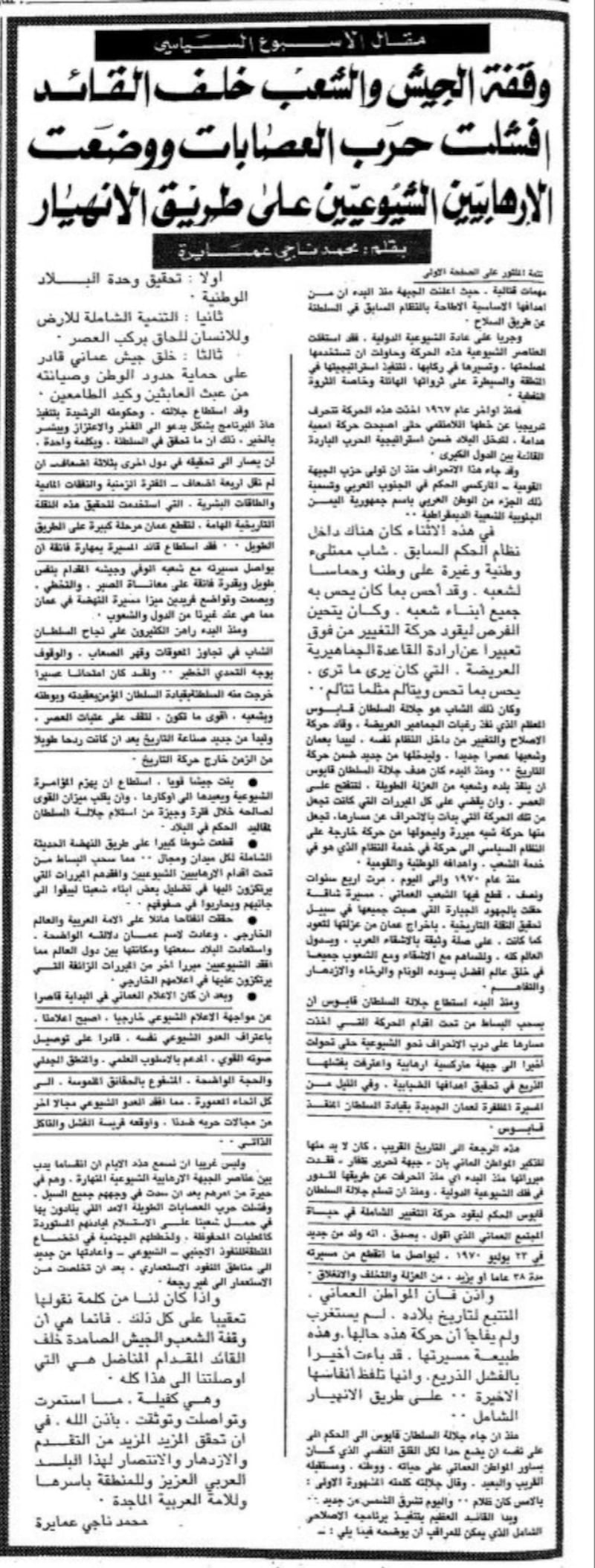 - صور المقالات من أرشيف جريدة عمان خلال الفترة من 1975-1978.