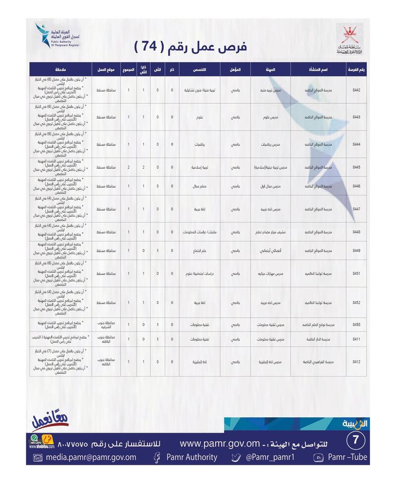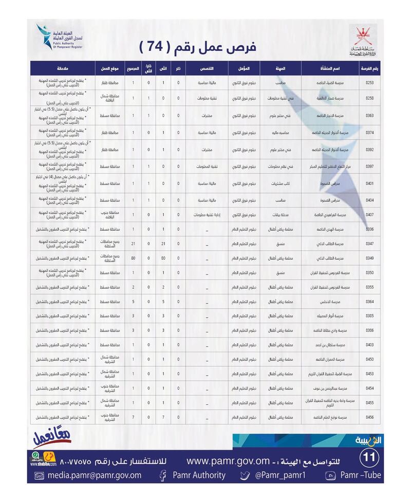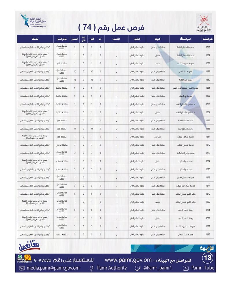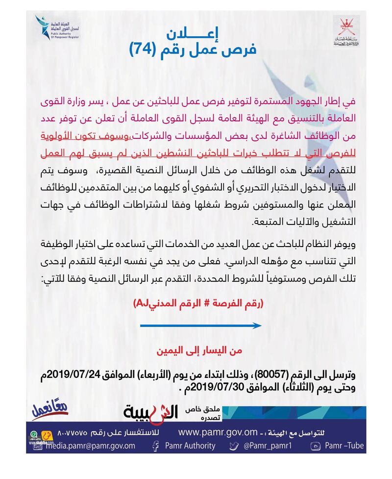أعلنت الهيئة العامة لسجل القوى العاملة وبالتنسيق مع وزارة القوى العاملة عن ملحق فرص العمل رقم (74) والذي يحتوي على 840 فرصة وظيفية.