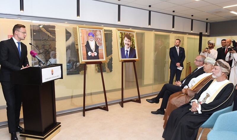 افتتح معالي بيتر سيارتو وزير الخارجية والتجارة المجري مساء اليوم مقر سفارة المجر بمسقط ( القرم ) بحضور معالي يوسف بن علوي بن عبدالله الوزير المسؤول عن الشؤون الخارجية.