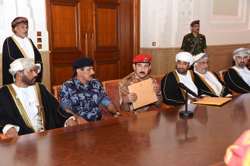 حسب المقطع المرئي المنشور للجلسة فقد تضمنت الرسالة الأولى الموجهة من السلطان قابوس بن سعيد -رحمه الله- إلى مجلس العائلة الكريمة عبر مجلس الدفاع اسم سلطان عمان الجديد. وقد نصت بـ “ربنا عليك توكلنا وإليك أنبنا وإليك المصير، الحمد لله والصلاة والسلام على رسول الله وعلى آله وصحبه ومن والاه. أصحاب السمو أعضاء مجلس العائلة الكرام. السلام عليكم ورحمة الله وبركاته. فقد حملكم النظام الأساسي للدولة أمانة عظيمة، وكلفكم مهمة جسيمة، بإسناده إلى مجلسكم الموقر مسؤولية تحديد من تنتقل إليه ولاية الحكم وذلك خلال الثلاثة أيام من شغور منصب السلطان، وحيث إن مجلسكم الموقر لم يتفق على اختيار سلطان للبلاد في المدة التي حددها النظام الأساسي للدولة، فإننا بعد التوكل على الله، ورغبةً منا في ضمان استقرار البلاد؛ نُشير بأن يتولى الحكم السيد هيثم بن طارق؛ وذلك لما توسمنا فيه من صفاتٍ وقدراتٍ تُؤهله لحمل هذه الأمانة. وإننا إذ نضرعُ إلى الله العلي القدير أن يكون عند حسن الظن الذي دعانا إلى اختياره، والثقة التي دفعتنا إلى تقديمه، فإننا ندعوكم جميعًا إلى مبايعته على الطاعة في العُسر واليُسر، والمنشطِ والمكره، وأن تكونوا له السند المتين، والناصح الأمين، مُعتصمين دائمًا تحت قيادته بوحدة الصف، والكلمة، والهدف، والمصير، متجنبين كل أسباب الشقاق والفرقة، والتنديد والتناحر، عاملين بقوله تعالى “وَلَا تَنَازَعُوا فَتَفْشَلُوا وَتَذْهَبَ رِيحُكُمْ ” صدق الله العظيم. وفقكم الله، والسلام عليكم ورحمة الله وبركاته. قابوس بن سعيد”.