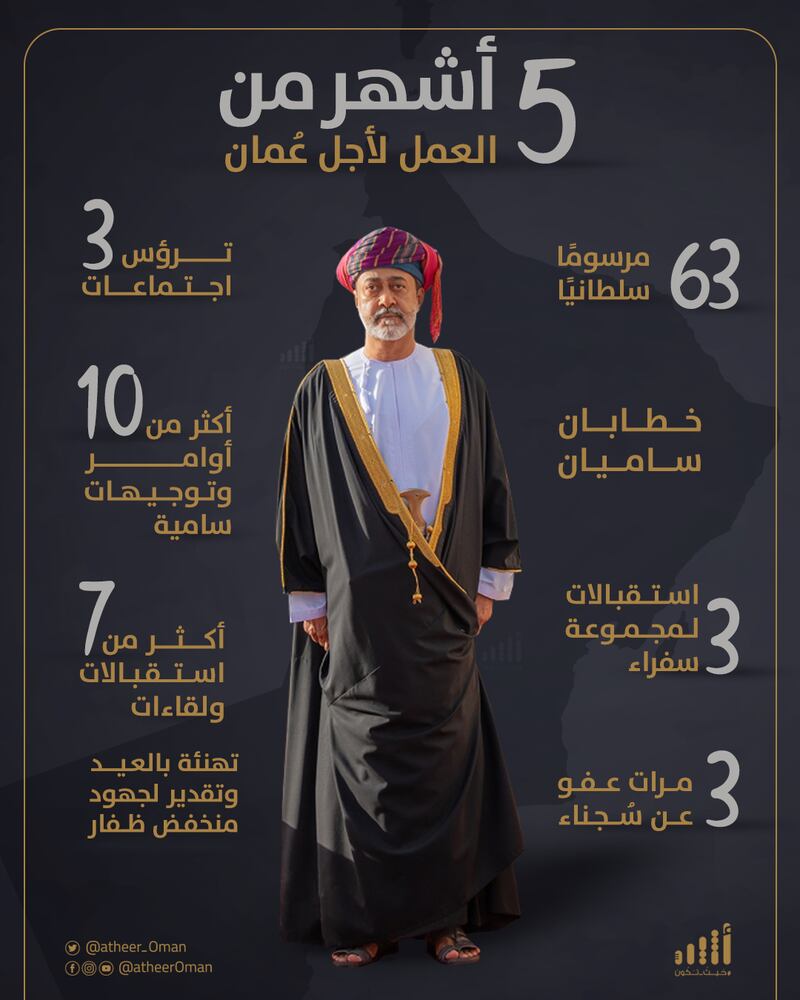 في خطابه السامي الأول بتاريخ 11 يناير أكّد جلالة السلطان هيثم بن طارق المعظّم – حفظه الله ورعاه- قائلًا: “ينبغي لنا جميعًا أن نعمل من أجل رفعة هذا البلد وإعلاء شأنه، وأن نسير قدمًا نحو الارتقاء به إلى حياة أفضل”، وفي 23 فبراير، وَعَدَنا عبر خطابه السامي الثاني فقال “أن نُكرِّس حياتنا من أجل عُمان وأبناء عُمان”، وها هي “الأرقام” اليوم تُوضّح مدى الجهد القياسي المبذول خلال 5 أشهر فقط، اكتملت أيامها الـ 152 اليوم الخميس.