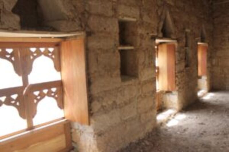 وكانت تستخدم في عملية البناء قديما الحجارة الجيرية او (حجر الجص) المتوفر في الولاية، كما يستخدم الطين لسد الفراغات بين الحجارة ويعتمد في عملية بناء السقف أعمدة خشبية من اشجار الميطان (نوع من الشجر ينمو في الجبل ويتميز بصلابته) وكذلك اعواد الركراك (اعواد شبيهة بالخيزران) او “الحفوت” ويوضع فوقها سعف النارجيل وفوق السعف الطوب المبلل منعا لتسرب الامطار وتثبيت المكونات السابقة.