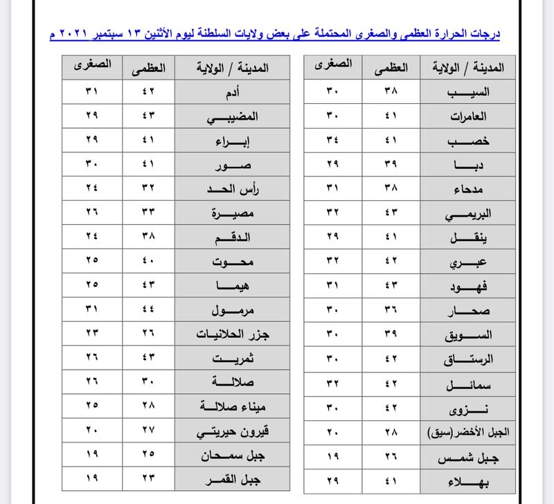 الركامية وهطول أمطار متفرقة تكون رعدية أحيانا على جبال الحجر خلال ما بعد فترة الظهيرة، واحتمال تشكل السحب المنخفضة أوالضباب آخر الليل والصباح الباكر على أجزاء من سواحل بحر العرب وبحر عمان.
