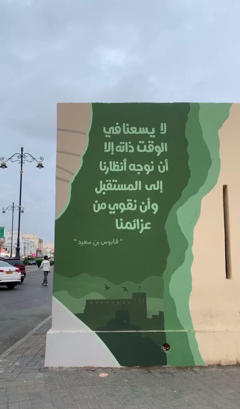 يقول الشاب خليل السالمي خلال حديثه مع “أثير” بأنه تم إنجاز هذا العمل بأسلوب “البوب آرت”، كما تم إضافة مجموعة من الرموز المعمارية الدالة لسلطنة عُمان، وتم عمل الخلفية باللون الأخضر وهو لون يُمثل النمو والسلام وهو لون مريح للعين.