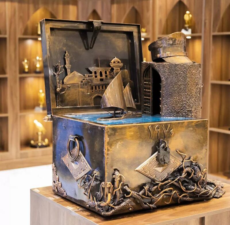 بعنوان “أعز الرجال وأنقاهم”، اقتنت “أثير” عملًا فنيًا منحوتًا بخامة الحديد بأنامل الفنان التشكيلي العماني محمد البلوشي، يحكي محطات تأسيس دولة آل سعيد وبداية نهضة عُمان الحديثة التي قادها السلطان قابوس بن سعيد – طيّب الله ثراه-.