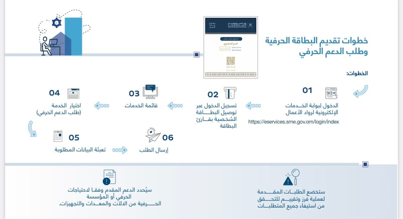 أما خطوات تقديم البطاقة الحرفية وطلب الدعم الحرفي فتكون وفق الآتي: