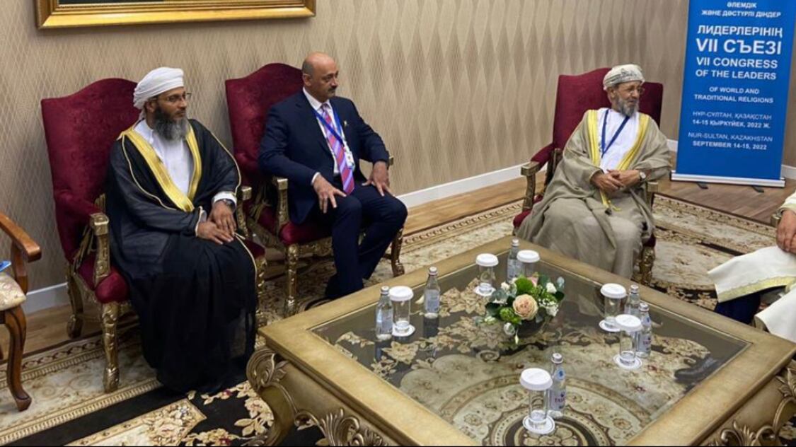 التقى سعادة الشيخ أحمد بن سعود السيابي الأمين العام بمكتب الإفتاء بالشيخ نوريزباي حاج تاغانولي أوتبينوف، المفتي العام لجمهورية كازاخستان في إطار مشاركة سعادة الشيخ في المؤتمر الدولي لزعماء الأديان بجمهورية كازاخستان .