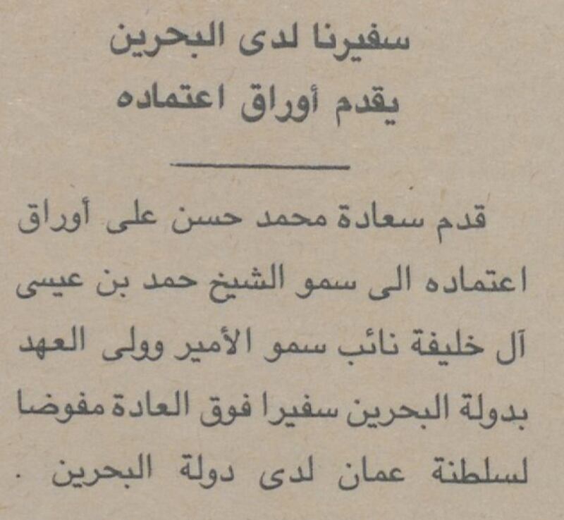 بعد حصول البحرين على استقلالها عام 1971م عبّر السلطان قابوس بن سعيد عن ابتهاجه والشعب العماني باستقلال دولة البحرين الشقيقة والتوصية بقبولها عضوًا في هيئة الأمم المتحدة فأرسل جلالته وفدًا برئاسة الشيخ سعود بن علي الخليلي لينقل تهاني جلالة السلطان إلى صاحب السمو الشيخ عيسى بن سلمان آل خليفة أمير البحرين، حيث نشرت جريدة (الوطن) خبرًا بذلك في صفحتها الأولى.