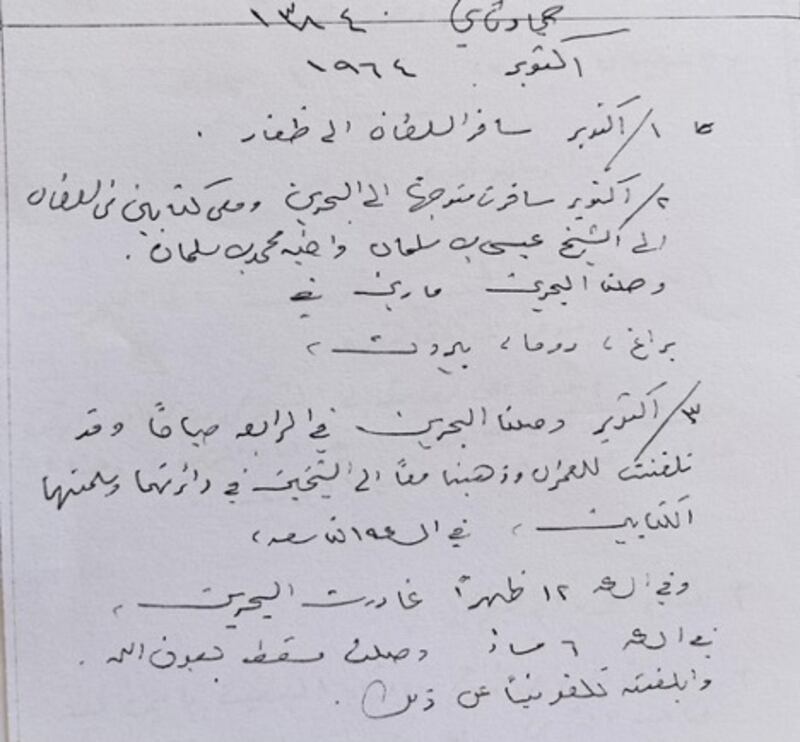 ويذكر الوالي إسماعيل بن خليل الرصاصي في مذكراته أنه قام في جمادى الآخر 1384 هـ الموافق أكتوبر 1964 بزيارة إلى البحرين، وتحديدًا في الثاني من أكتوبر حيث حمل معه كتابين ( رسالتين) من السلطان سعيد بن تيمور إلى الشيخ عيسى بن سلمان آل خليفة وأخيه الشيخ محمد بن سلمان.