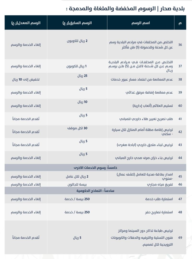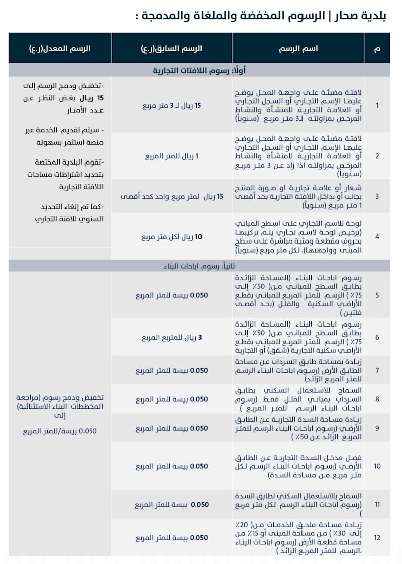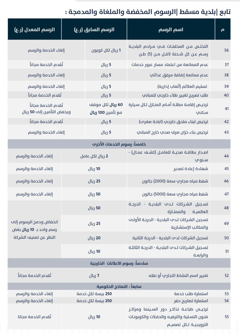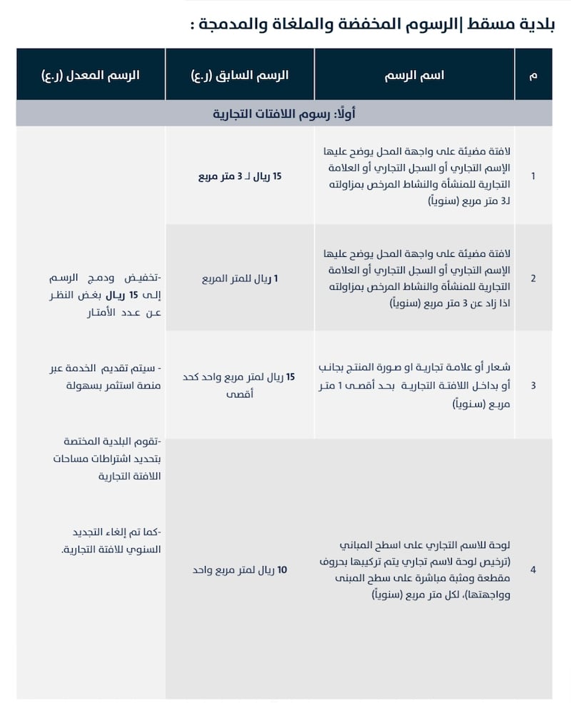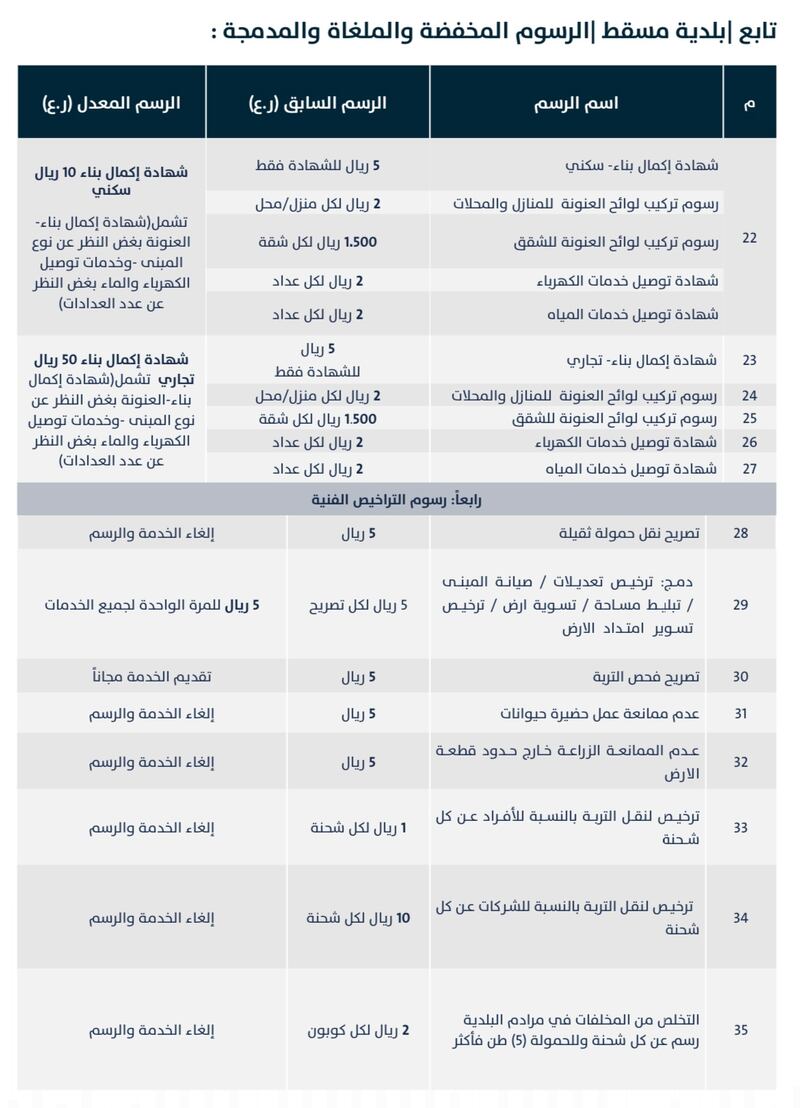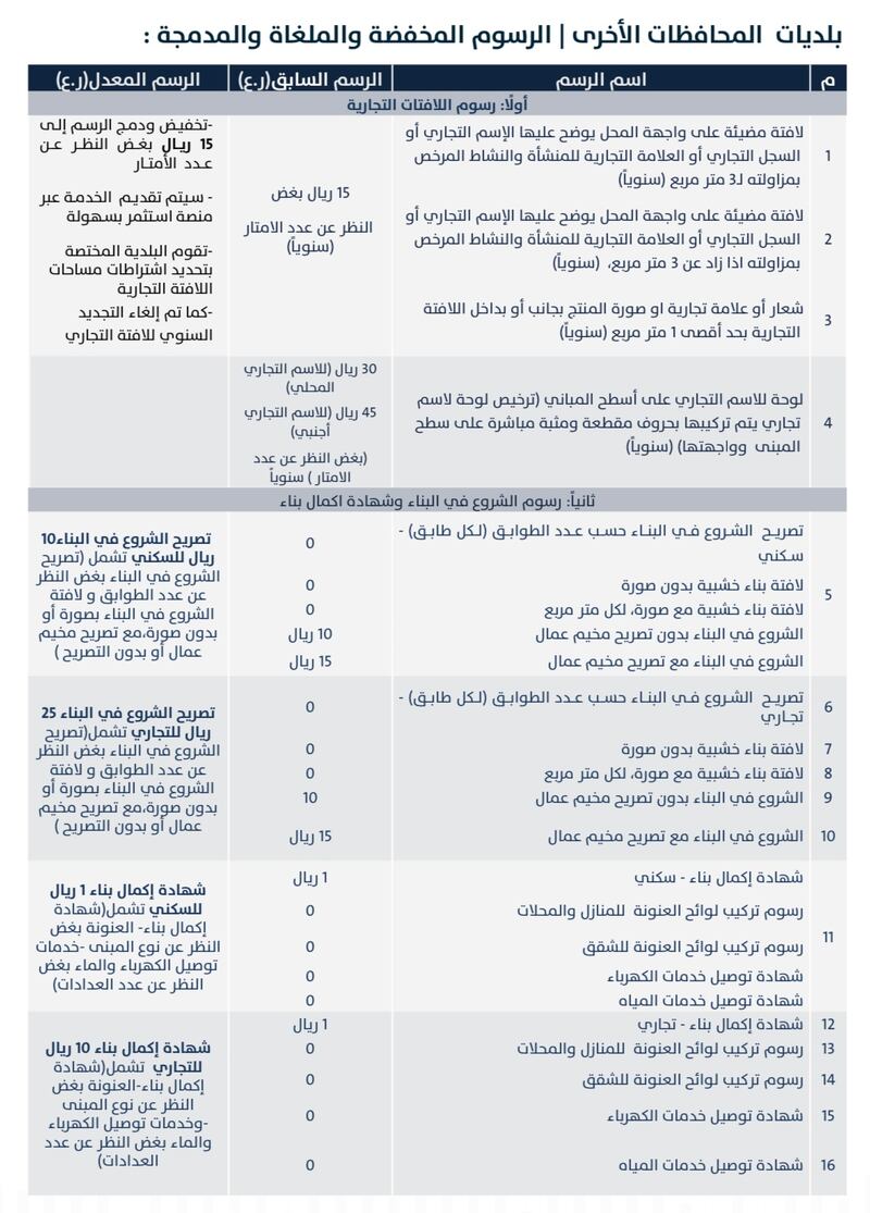 وتستعرض “أثير” للقارئ الكريم الرسوم (المخفضة والملغاة والمدمجة) في قطاع البلديات، كالآتي: