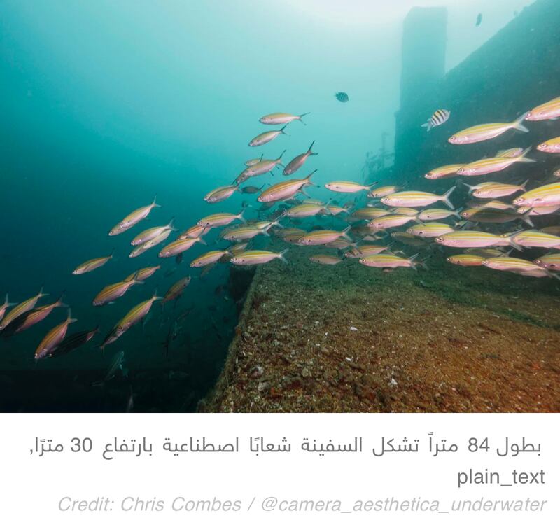 وأشار كومبس إلى غنى الحياة البحرية في الموقع، حيث يمكن مشاهدة الأحياء المائية النادرة بما في ذلك ثعبان البحر، والسلاحف، والرقيب، والأسماك الكبرى، والنهاش، وسمك الراي، موضحًا أن حطام سفينة “المناصر” يوفر تجربة بصرية فريدة من حيث موقع الحطام ذاته والحياة البحرية التي تتخذه موئلًا، وفقًا لما ذكره.
