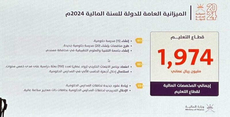 • التوظيف في الحكومة يتم بناء على النمو الطبيعي للمشروعات والإحلال، وتم تخصيص 36 مليون ريال عُماني في ميزانية 2024 لبرامج التدريب مقابل التشغيل.