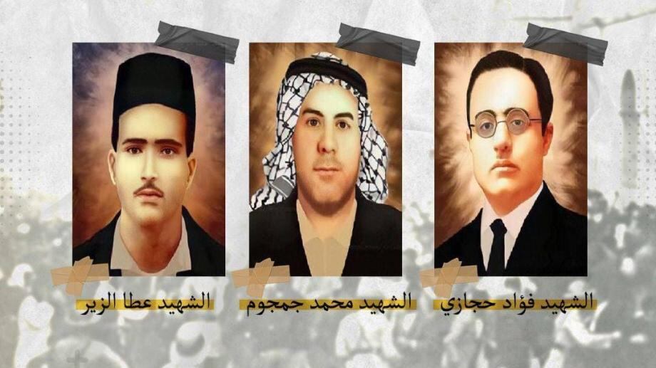 الأغنية تتحدّث عن ثلاثة مقاومين مجاهدين فلسطينين..حكم عليهم المندوب البريطاني بالإعدام ، لكنّ الأروع في الحكاية أنّ ثلاثتهم ظلّوا يطالبون أن يُعدموا قبل الأخيريْن وظلت الأغنية تردّد هذه الخصال الاستثنائية الحميدة ..إلى نهايتها ..، وإليكم بعض ما جاء في الأغنية بالدارجة الفلسطينية: