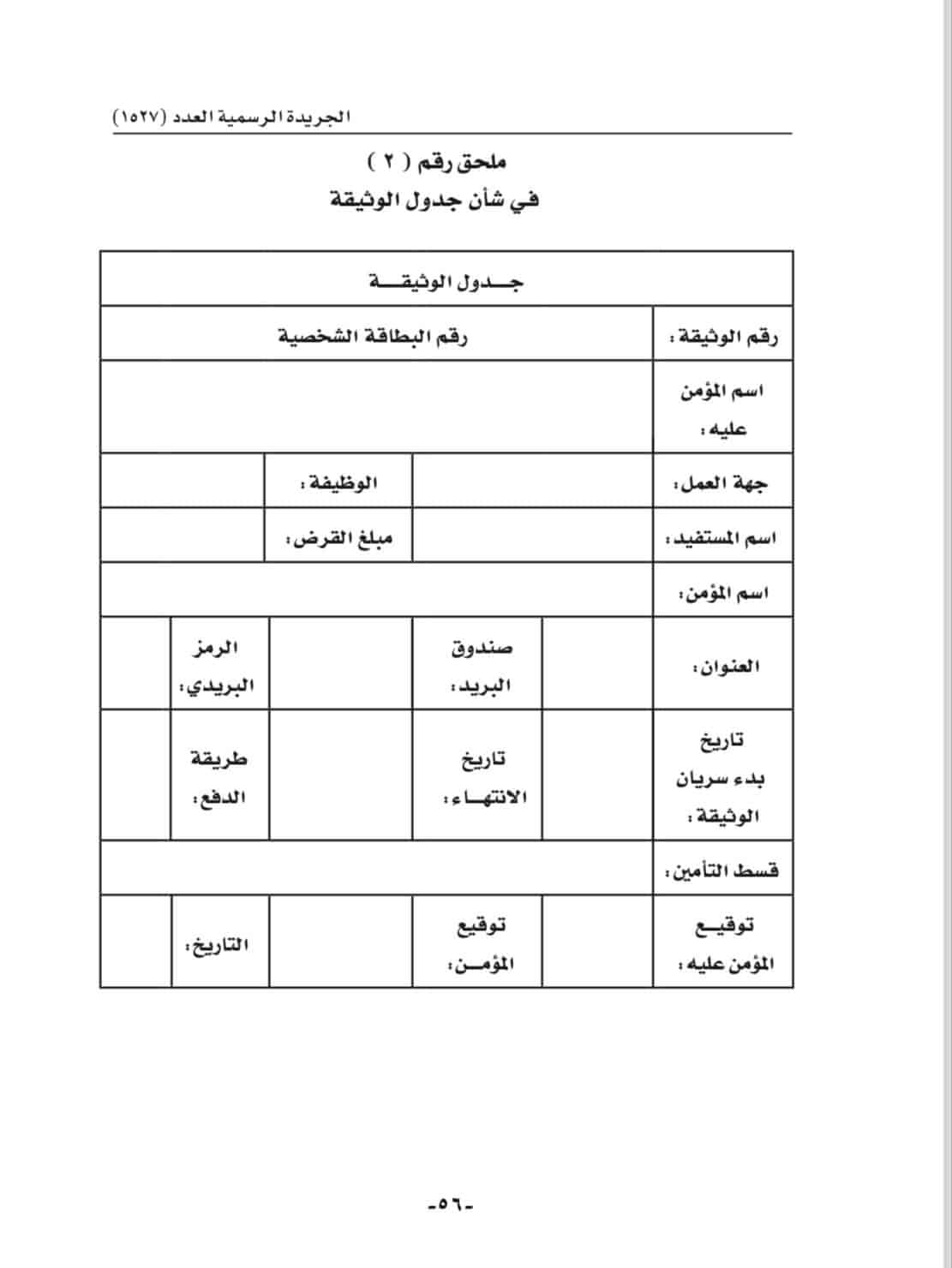 وحسبما رصدته “أثير”، نص القرار في مادته الأولى على العمل بنموذج الوثيقة الموحدة على حياة المقترضين الآتية: