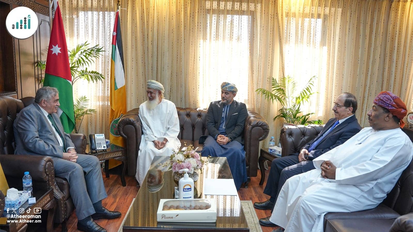 يُذكر أن الوفد زار كلية الآداب والتقى عميدها الدكتور محمد القضاة لمناقشة آفاق التعاون بين المؤسسة والكلية، وتبادل الآراء حول شؤون الجامعة الأردنية التي تخرّج منها كلٌّ من المستشار الأكاديمي لمؤسسة “أثير” الدكتور محمود السليمي، والشاعر حمود العيسري، الذي أهدى في الختام الأردن قصيدة من تأليفه .