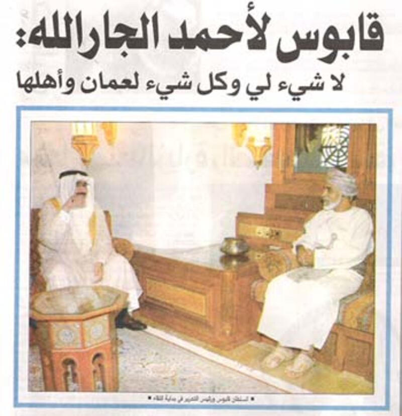 كان الصحفي الكبير أحمد الجار الله رئيس تحرير جريدة السياسة الكويتية أحد أكثر الصحفيين الذين كانوا يلتقون بالسلطان قابوس – طيّب الله ثراه – ، وأجرى معه العديد من الحوارات منذ حواره الشهير في سبتمبر 1970.