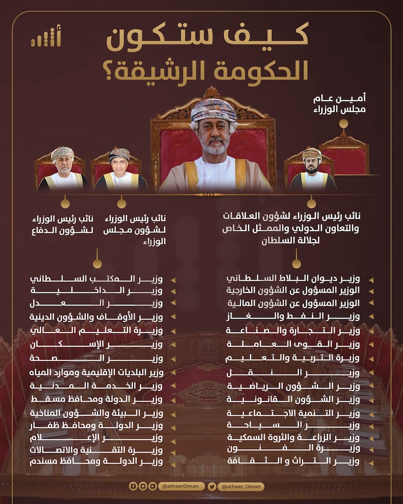 وهو ما يعني وجود 34 مسؤولًا الآن في تشكيلة مجلس الوزراء برئاسة جلالته، منهم 27 وزيرًا لـ “وزارات أو في مستواها”، وهي التشكيلة الأعلى منذ إنشاء المجلس في عام 1970م.