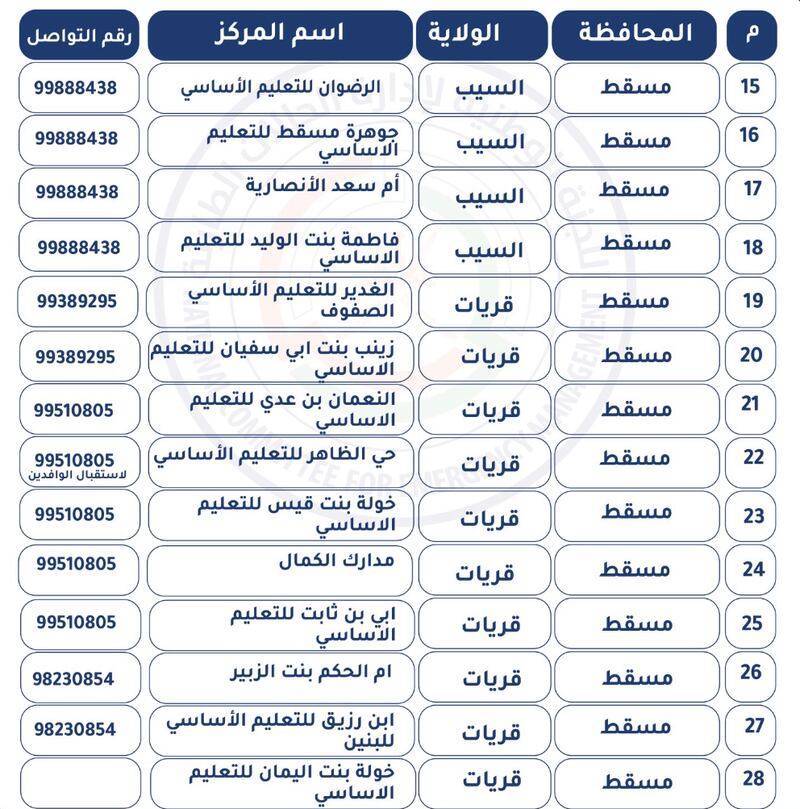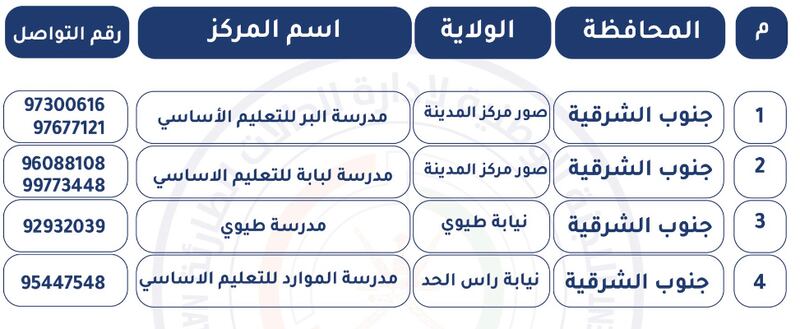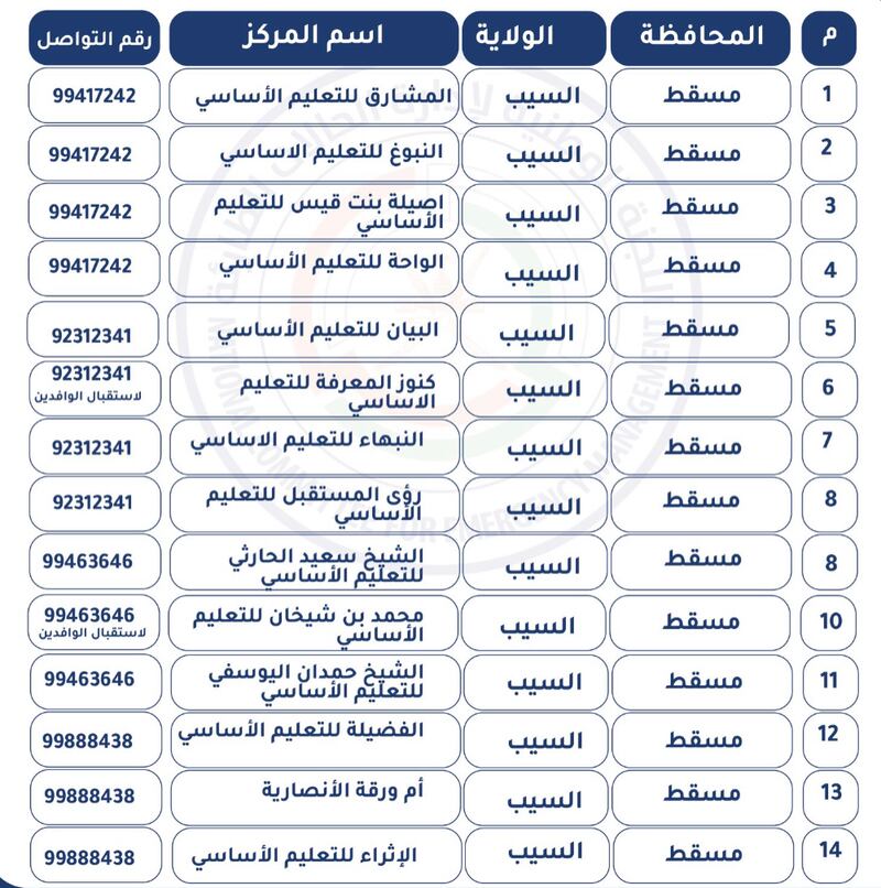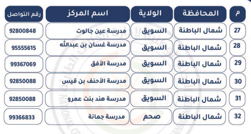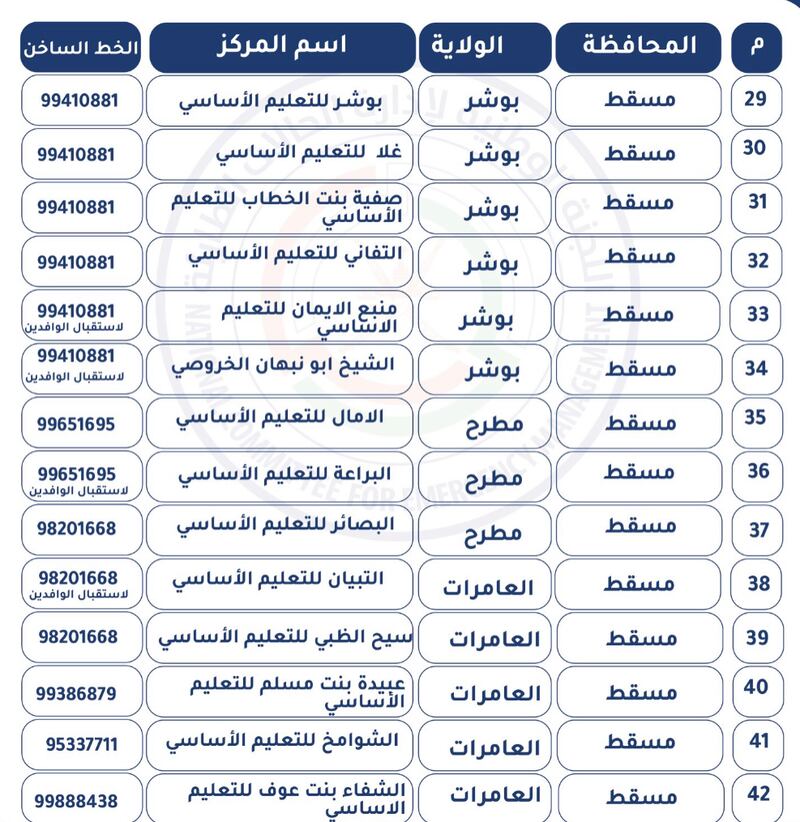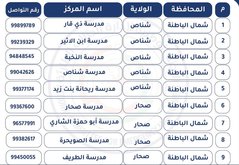 نشر حساب (عمان مستعدة) بتويتر كشف بمراكز الإيواء الجاهزة للتفعيل بمحافظة الباطنة ومحافظة مسندم، ومحافظة مسقط، ومحافظة شمال الباطنة، ومحافظة جنوب الشرقية.