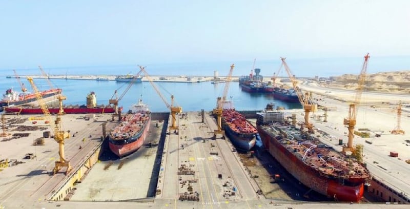 مجمع الحوض الجاف: يعمل لخدمات إصلاح وصيانة السفن وهو أكبر ساحة وأحدثها في الوطن العربي ويستقبل السفن متعددة الأحجام والأنواع، وقد بلغ عدد السفن التي استقبلها الحوض منذ تشغيله في عام 2011 وحتى نهاية عام 2021 حوالي 1170 سفينة، كما بدأ الحوض في عام 2021 المرحلة الثانية من المشروع لتصنيع السفن، ويتكون الحوض الجاف بالدقم من حوضين، الأول بطول 410 أمتار وعرض 95 مترًا، والثاني بطول 410 أمتار وعرض 80 مترًا، وبعمق يصل إلى 14 مترًا، ويستطيع الحوض الجاف تقديم الخدمة لسفن تبلغ حمولتها 600 ألف طن، كما يشتمل الحوض على رصيف بطول 2800 متر وورش صناعية وساحات مهيأة بمساحة 453 ألف متر مربع.