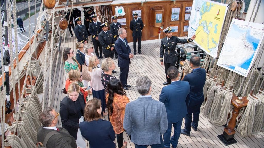 استقبلت سفينة البحرية السُّلطانية العُمانية شباب عُمان الثانية عددًا من كبار الزوار خلال فترة رسوّها في ميناء (ويست انديان دوكس) بالمملكة المتحدة ضمن رحلتها الدولية السادسة “عُمان أرض السلام” إلى القارة الأوروبية.