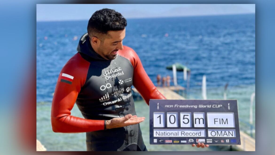 سجل البطل العماني عمر الغيلاني رقمًا وطنيًا جديدًا في بطولة كأس العالم للغوص الحر (آيدا أكتوبر 2022)، التي يشارك فيها حاليًا.