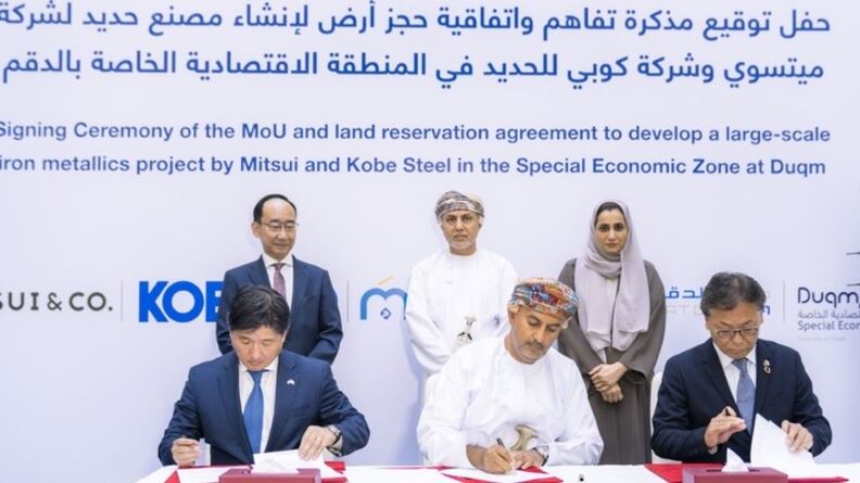 وقّعت الهيئة العامة للمناطق الاقتصادية الخاصة والمناطق الحرة على مذكرة تفاهم مع شركتي يابانيتين “كوبي ستيل” و”ميتسوي وشركائها المحدودة”، لإنشاء مصنع للحديد المختزل بالمنطقة الاقتصادية الخاصة بالدقم بطاقة إنتاجية تقدر بـ 5 ملايين طن من الحديد المختزل سنويا، فيما وقّعت الشركتان على اتفاقية حجز أرض مع شركة ميناء الدقم ومذكرة تفاهم أخرى مع شركة “مرافق” لتزويد المشروع بالكهرباء والمياه.